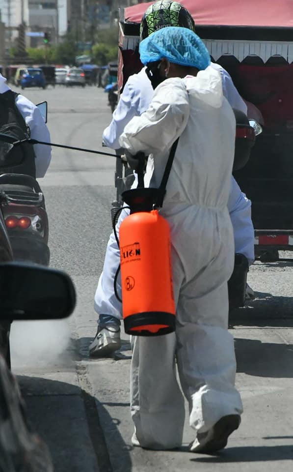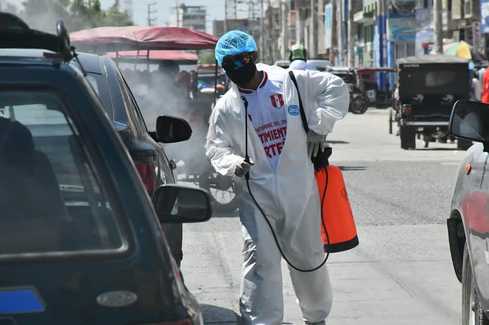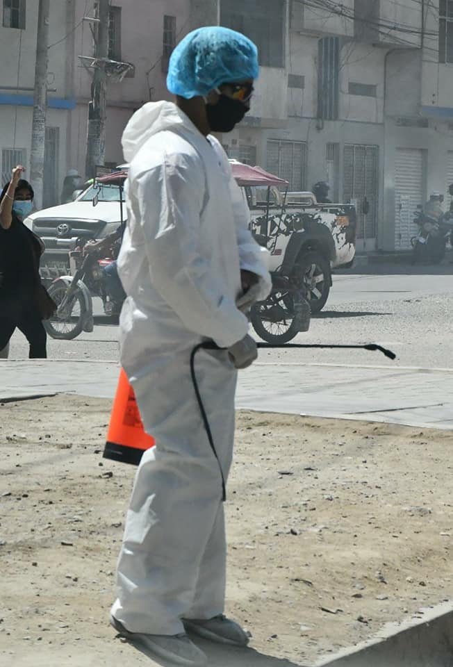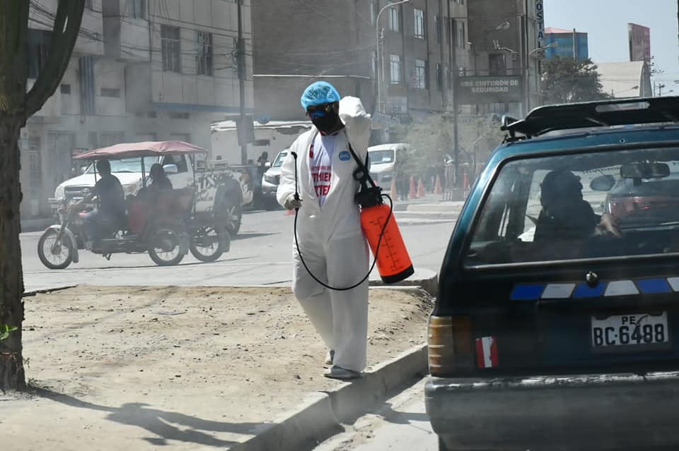 El ingenio peruano no tiene límites. A Óscar Rolando solo le bastó una fumigadora personal, un mameluco, guantes, mascarilla y su protector para el cabello y a trabajar.»Yo no tengo tarifa, solo pido su voluntad y apoyo a mi trabajo», le contó al reportero gráfico Luis Rodríguez Sánchez. Recuerda que un vecino, a quien le ayudó a cargar su triciclo de mercadería, le dio los productos a precio de costo. «Me gusta trabajar independiente y no me quejo. Los primeros días de la pandemia sí me afectó. Ahora ya me estoy recuperando. Tengo familia y unos padres por ver. Espero que también ustedes me ayuden», enfatizó.