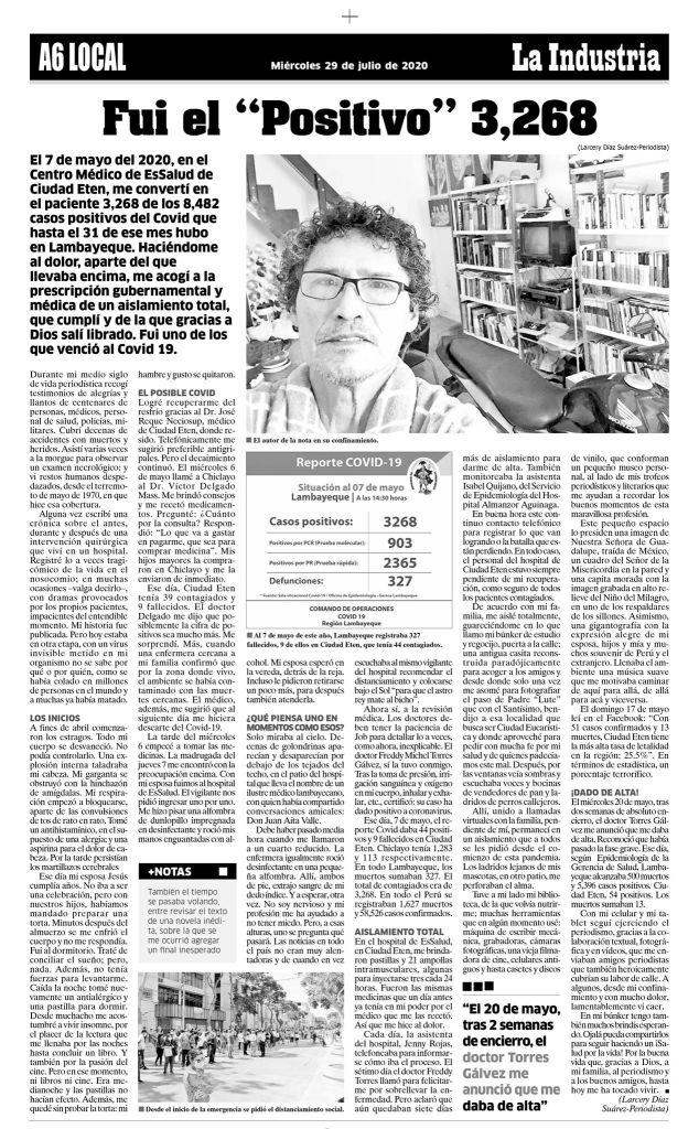El diario La Industria, de Chiclayo, publicó la crónica el miércoles 29 de julio del 2020, la misma fecha en que se publicó este post.