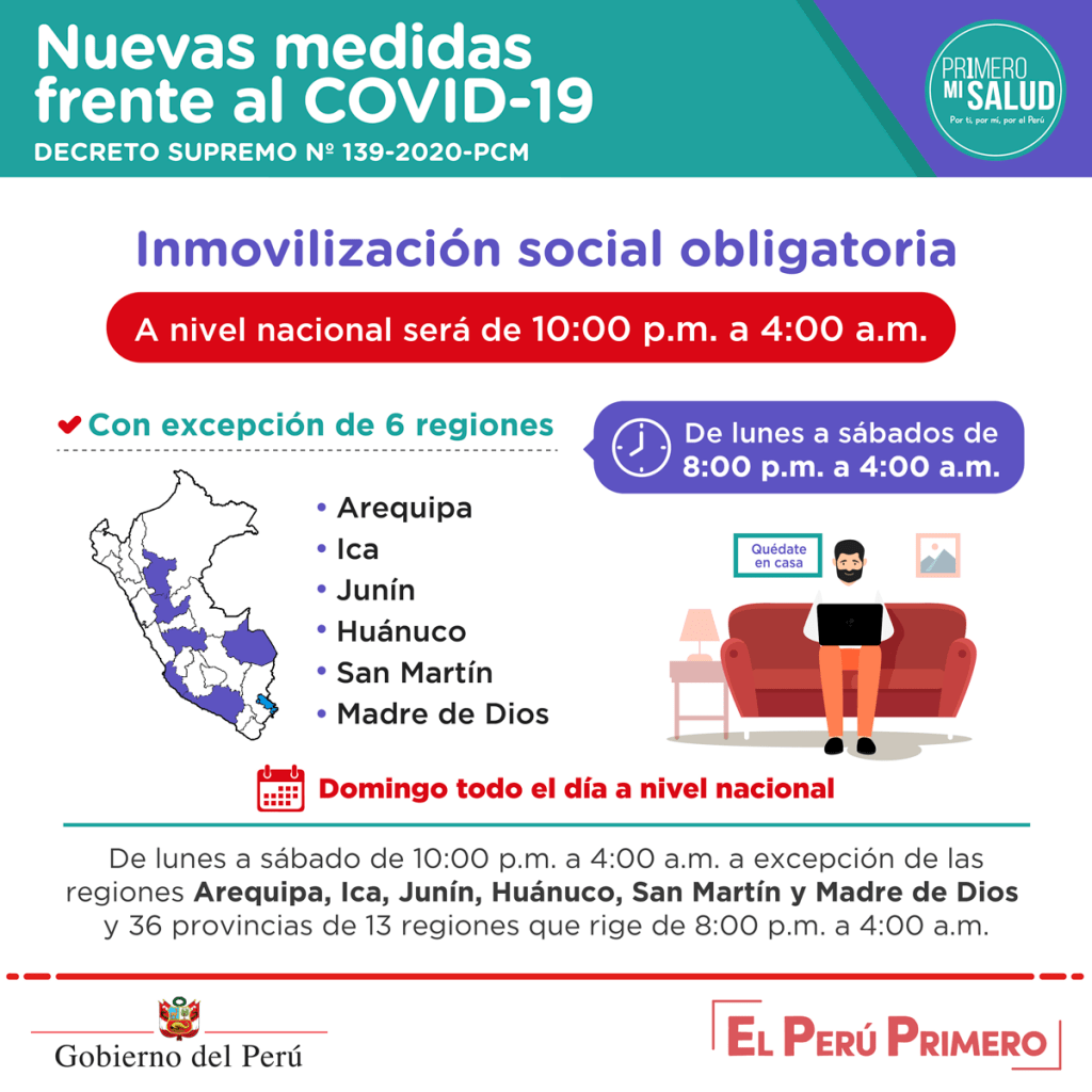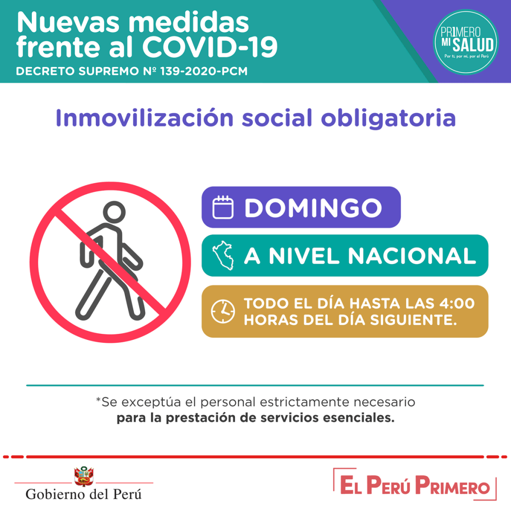 Estas son las nuevas medidas que ha adoptado el gobierno peruano en su lucha contra el Covid 19 y que, tras el mensaje del presidente Martín Vizcarra la tarde del miércoles último, fueron publicadas por la noche en una edición extraordinaria del diario oficial El Peruano. Están contenidas en el Decreto Supremo N°.139-2020-PCM.