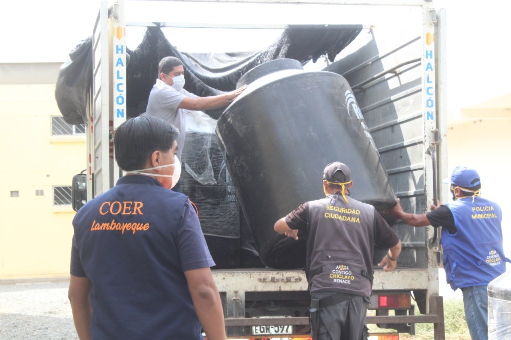 El Gobierno Regional de Lambayeque a través del Centro de Operaciones de Emergencia Regional (COER) ha entregado un total de 29 tanques de agua de 1100 litros de capacidad a municipalidades y Ejército para atender la emergencia de la pandemia de la COVID-19.