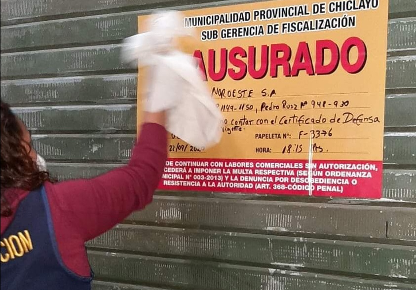La medida fue adoptada al detectarse que dicho establecimiento funciona con el certificado vencido de Defensa Civil, lo que pone en grave riesgo a los vendedores, clientes y consumidores que asisten diariamente a este lugar ubicado en plena avenida Balta, a pocas cuadras del centro de Chiclayo.