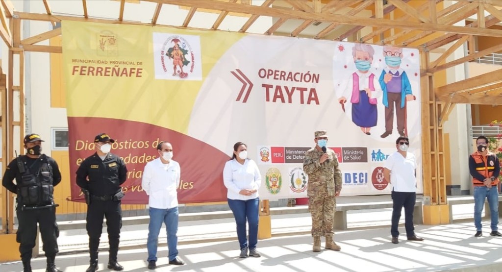 Teniendo como escenario, la institución educativa Manuel Antonio Mesones Muro, se llevó a cabo la operación #Tayta en Ferreñafe, actividad organizada por el Comando Covid Lambayeque en coordinación con la Municipalidad Provincial, GERESA, EsSalud, PNP e INDECI.