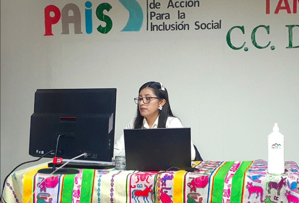 El equipo del Programa PAIS del Midis, al conocer su necesidad, de inmediato facilitó el uso de las instalaciones del Tambo Ura Ayllu y el acceso a internet exclusivo para que la joven universitaria pueda presentarse ante el jurado calificador de la Universidad Nacional del Altiplano (UNAP) en una videoconferencia sin interrupciones.