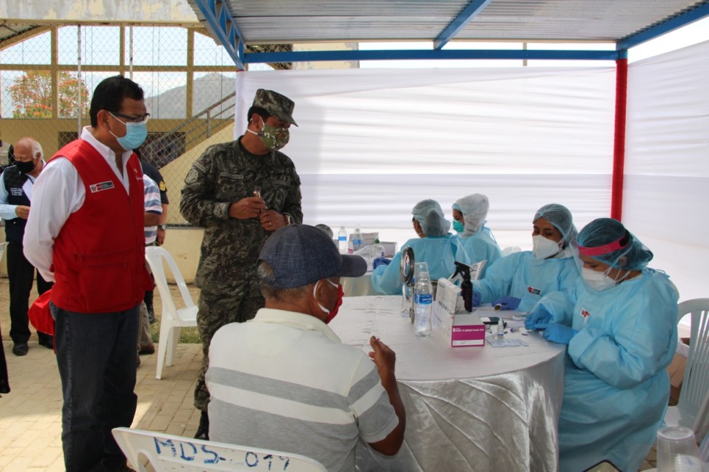 Montenegro Chavesta arribó a primeras horas de la mañana al coliseo del centro educativo “Jorge Chávez”, donde personal médico del Ministerio de Salud viene realizando despistajes y atenciones médicas a los pobladores de la zona, con el fin de descartar la presencia del COVID-19.