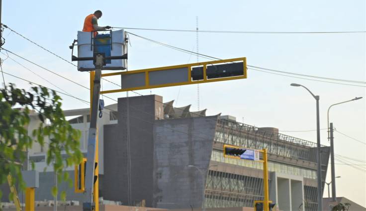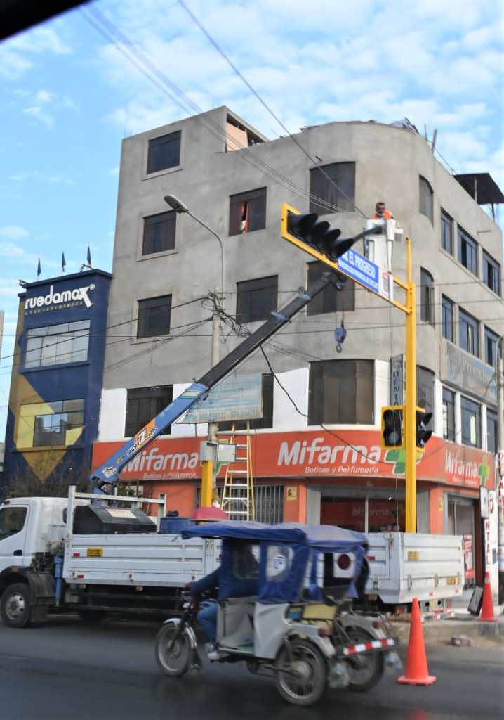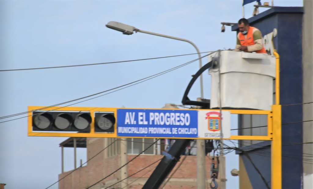 Se viene instalando sistemas de semáforizacion en la intensa zona vehicular de la zona adyacente al Hospital Regional Covid, en Chiclayo, en plena Vía de Evitamiento, de la carretera Panamericana Norte, que da a Lambayeque y la Av. El Progreso.
