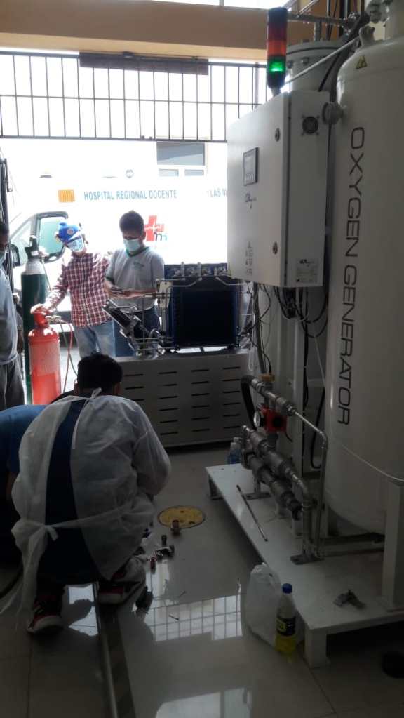 Hoy se procedió a la instalación de un nuevo equipo de compresión de oxígeno de alta presión para la planta del Hospital Regional Docente Las Mercedes de Chiclayo, que permitirá incrementar el suministro para la población asegurada y no asegurada.