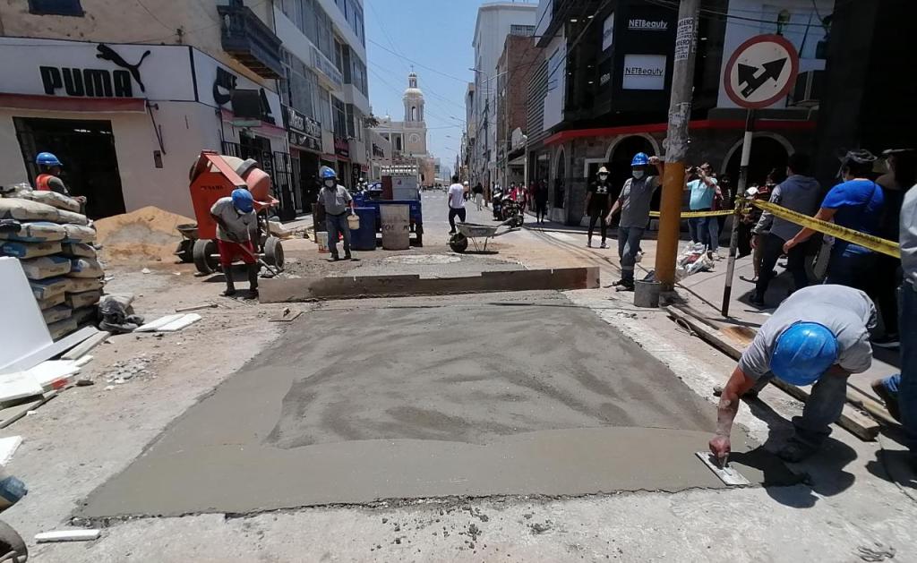 Los trabajos de reparación del colector principal de desagüe averiado en la calle Elías Aguirre, donde se presentó un hundimiento, se lograron concluir con la reposición del pavimento de concreto.