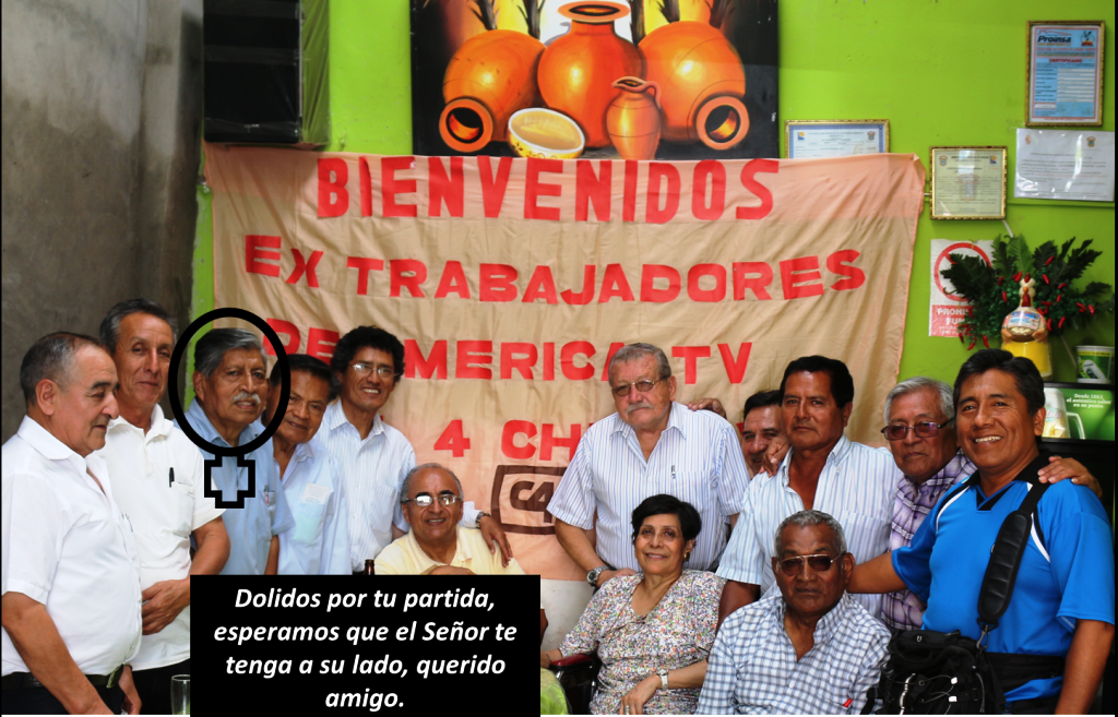 En la foto, se le ve acompañando a varios de quienes con él laboraron en Canal 4 de Chiclayo, precisamente celebrando una reunión de aniversario de la empresaa donde trabajaaron y en la otra vista, saliendo de una misa de la iglesia Catedral de Chiclayo, en homenaje a uno de sus excompañeros fallecidos.