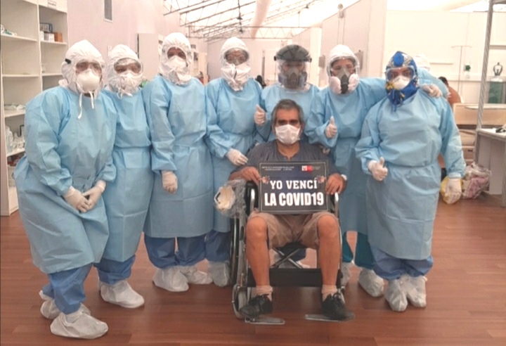 Un hombre de 70 años con antecedentes de dos infartos cerebrales, hipertensión, diabético y con un cuadro de cetoacidosis venció a la Covid19 y es parte de los cinco pacientes dados de altas hoy en el Centro de Hospitalización Temporal “Carlos Augusto Salaverry”.