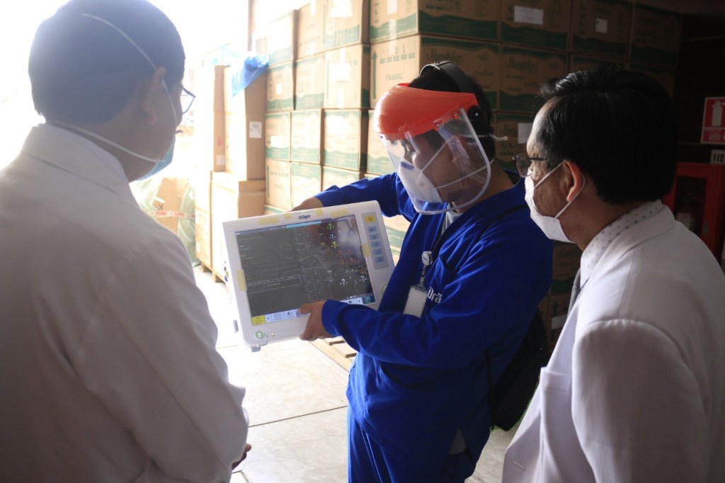 El Hospital Regional de Lambayeque, con sede en Chiclayo recibió, por parte del Ministerio de Salud, 25 ventiladores mecánicos volumétricos adulto/pediátrico – Draeger y 12 monitores de signos vitales de 8 parámetros, los cuales ayudarán a continuar la atención de pacientes con el Covid19.