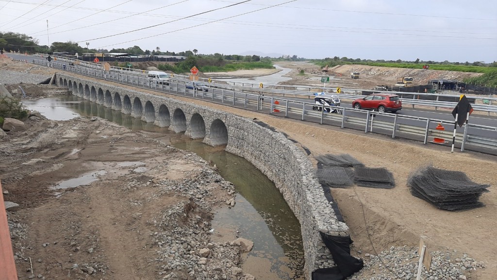 “La intervención de reconstrucción comprende el reforzamiento del puente Reque y la construcción de defensas ribereñas. Estos trabajos adicionales permiten la protección de esta importante infraestructura, de la manera más rápida posible con lo que ya estamos en un 30% de avance”, precisó el residente de obra, Alberto Flores.