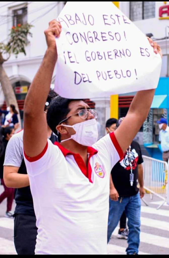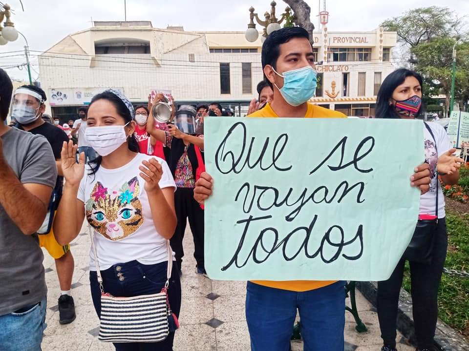 Jóvenes y adultos marcharon hoy por las calles de Chiclayo, haciendo sentir su malestar por el momento político que vive el país, en contra de la vacancia presidencial a Martín Vizcarra y del nuevo gobierno que encabeza Manuel Merino de Lama, quien asumió está mañana la presidencia.