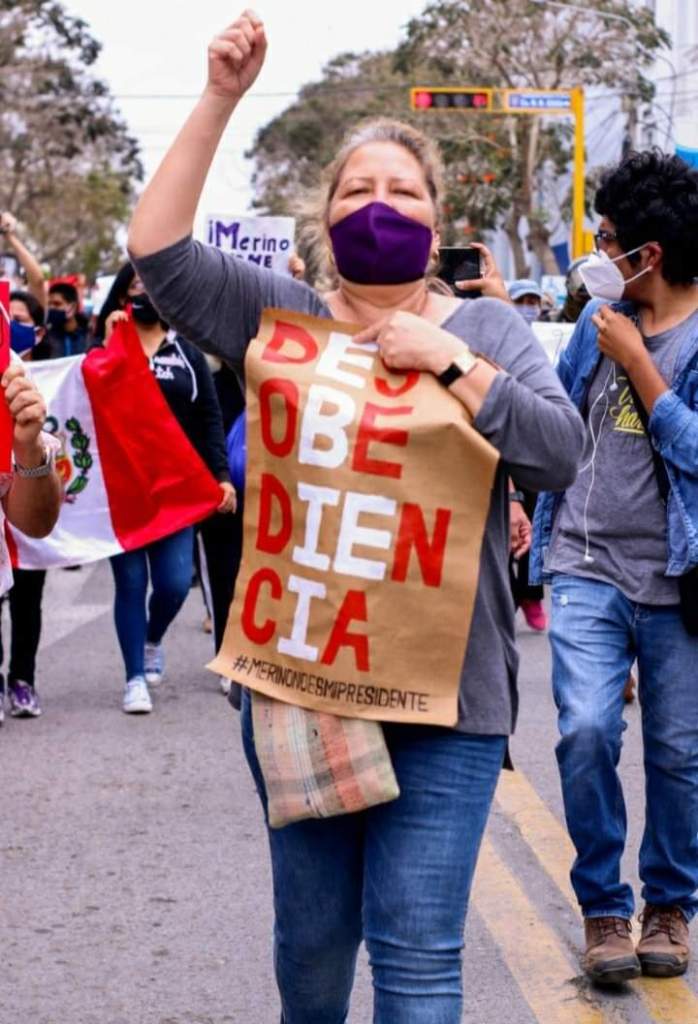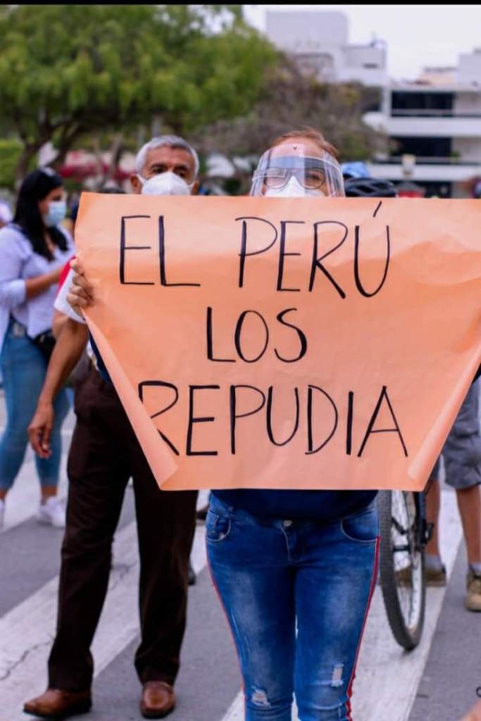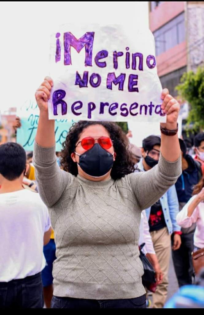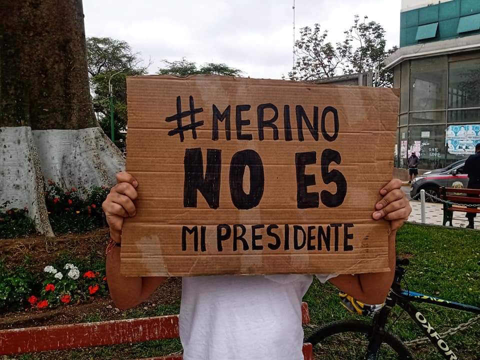 Los lemas que se pudieron leer fueron: Nadie le debe obediencia a un gobierno usurpador, El Congreso no me representa, Merino no me representa, Desobediencia, El Perú los repudia, entre otros.