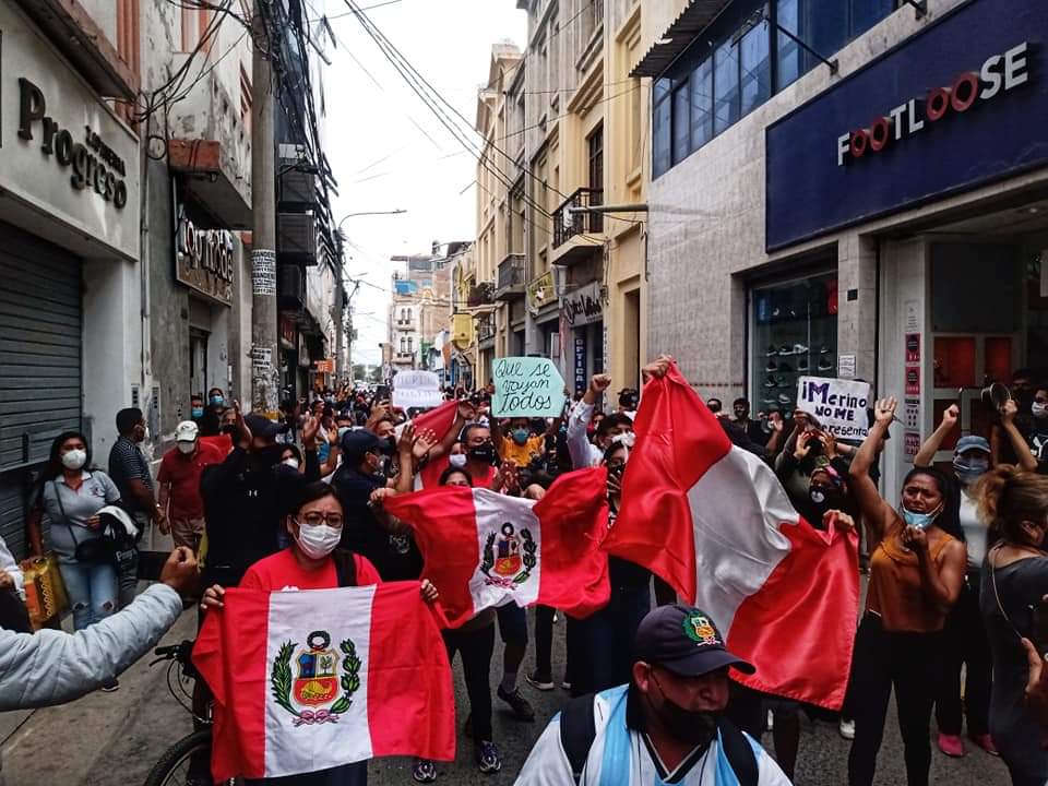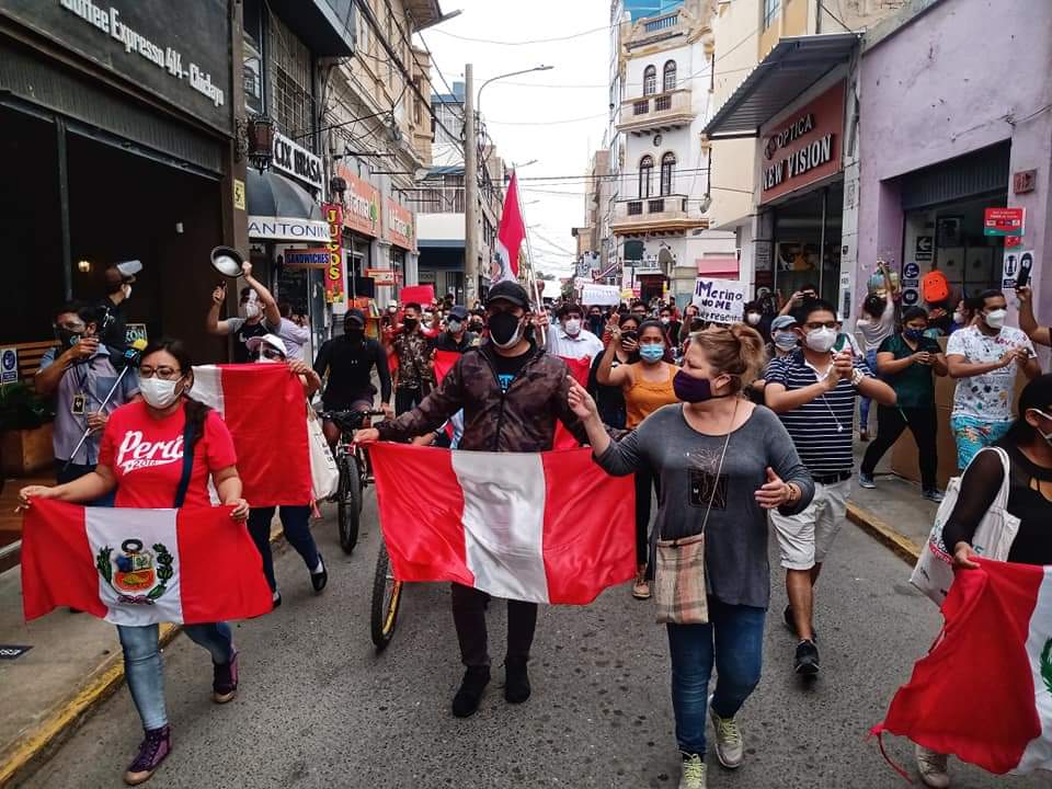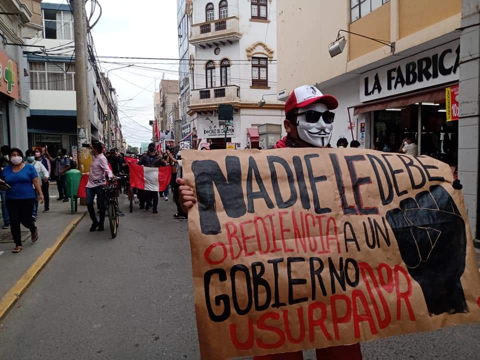Los manifestantes, convocados a través de las redes, se reunieron en la plazuela Elías Aguirre, donde en los últimos años se han producido protestas en contra de atentados a la democracia peruana. La marcha recorrió las calles de la ciudad con pancartas y banderas peruanas. La policía y el ejército estuvo presentes en el recorrido que fue pacífico y llegó hasta el parque principal de esta capital.