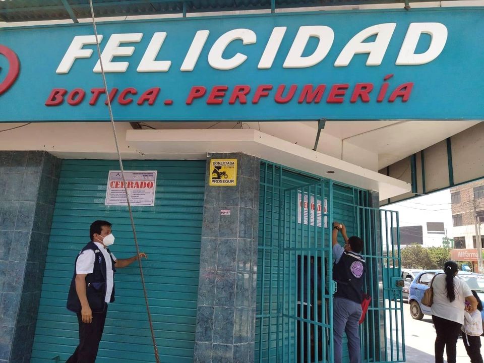 Tres boticas, ubicadas en el centro de Chiclayo, fueron clausuradas esta mañana por no contar con químico farmacéutico y tener medicamentos vencidos así como en mal estado de conservación. Los establecimientos sancionados son Felicidad, Megafarma y Mifarma.