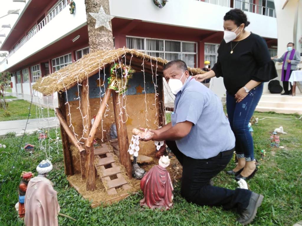 Posteriormente, el jefe de la Oficina Regional de Programación Multinual de Inversiones y la Procuradora Pública Regional colocaron el niño en el pesebre como una alegoría al nacimiento del mesías y salvador.