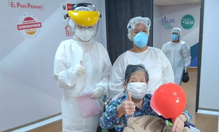 Tres mujeres de 85, 82 y 78 años, fueron dadas de alta en el Centro de Hospitalización Temporal “Carlos Augusto Salaverry”, subsede del Hospital Regional de Lambayeque, ubicado en el distrito de La Victoria, en Chiclayo, venciendo a la #Covid19.