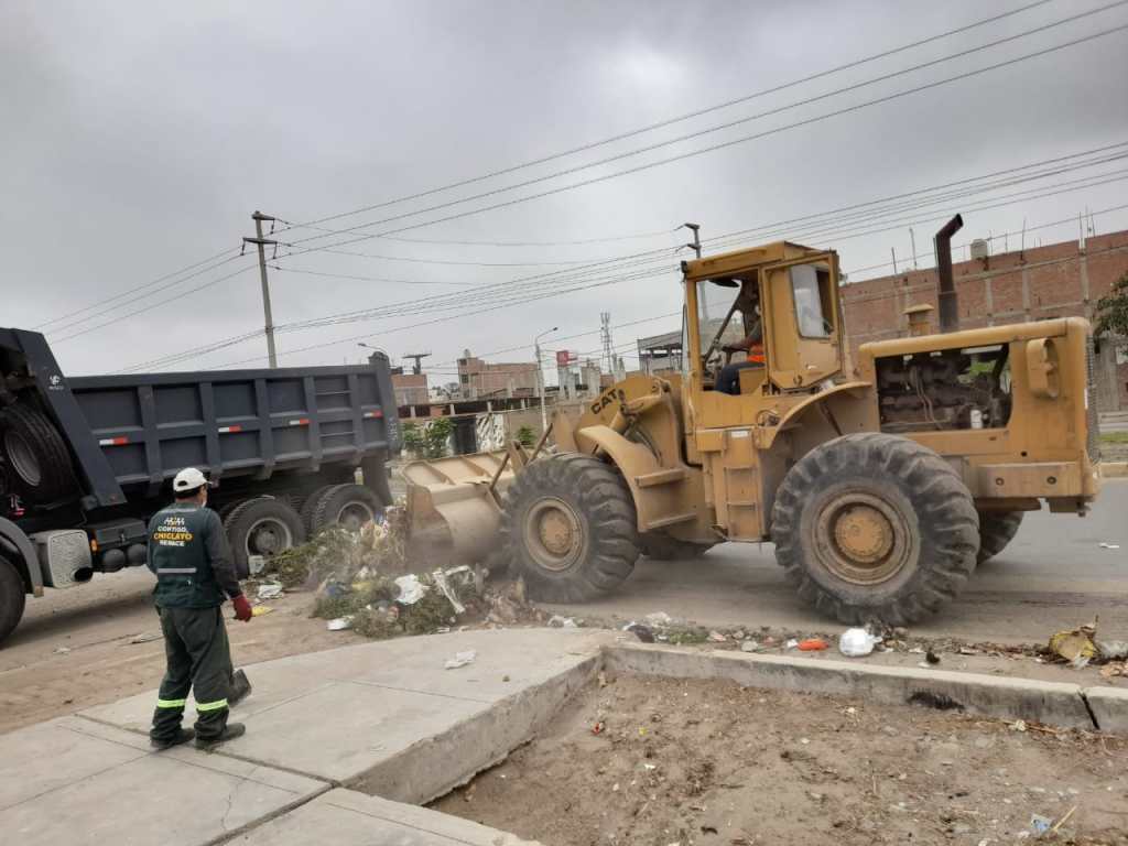 El Gore ha desplegado 9 volquetes, 1 cargador frontal y 1 motoniveladora, y con el personal operario de la comuna de Chiclayo trabajarán hasta mañana 31, limpiando los diversos puntos críticos que tiene la ciudad.