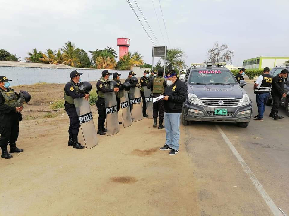 La intervención es en vía de prevención de los delitos de disturbios, motín, apología al delito, daños a la propiedad pública y privada, delitos contra la vida el cuerpo y la salud, extorsión, violencia contra la autoridad policial para impedir el ejercicio de sus funciones, abuso de autoridad policial, incumplimiento de normas sanitarias, propagación de la covid-19, se produjo esta mañana en el distrito de Pátapo.