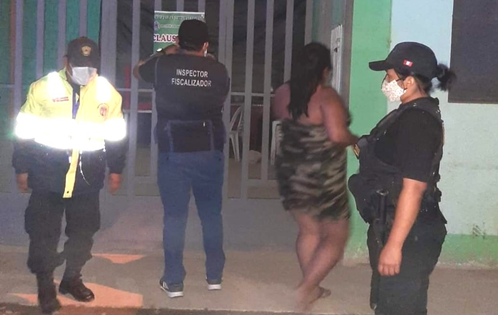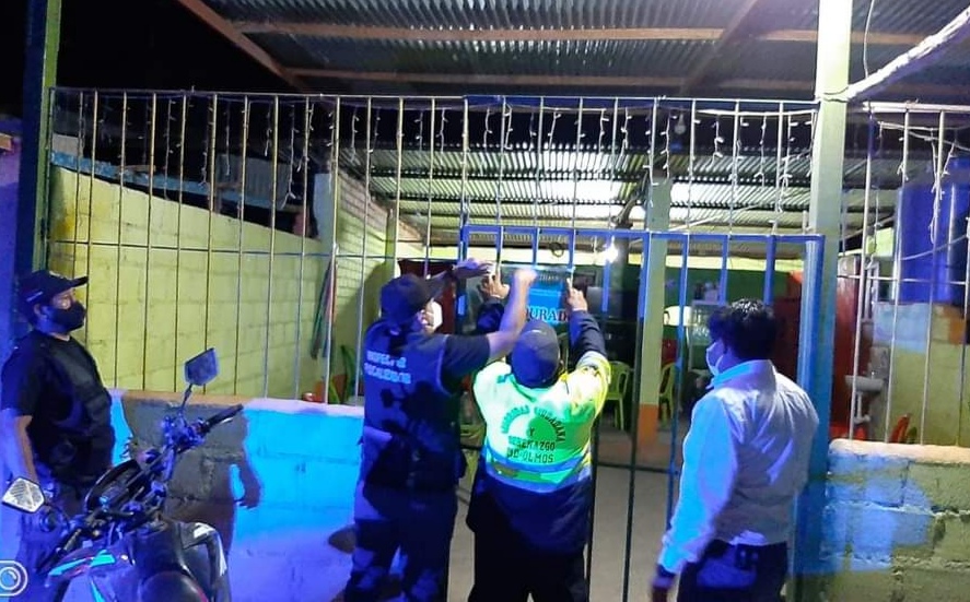 En horario de toque de queda se intervino el Bar El Portón Azul, con personas en el interior bebiendo licor; en el sector AAHH Alan García se clausuró y se multó a 2 restaurantes por las mismas medidas donde se encontraban personas que no contaban con mascarillas.