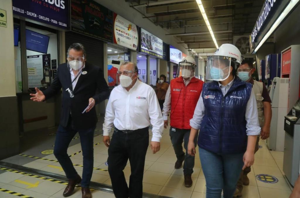 El ministro de Transportes y Comunicaciones, Eduardo González, realizó una visita inopinada al Terminal Plaza Norte, ubicado en el distrito de Independencia, para verificar el cumplimiento de los protocolos sanitarios dictados por el sector, en coordinación con el Ministerio de Salud, con el fin de evitar la propagación de la Covid-19 durante los viajes interprovinciales.