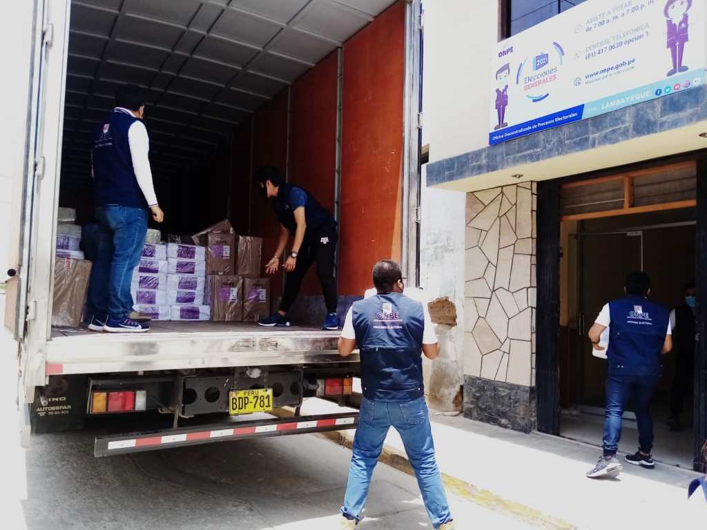 En el marco de las Elecciones Generales 2021, la Oficina Nacional de Procesos Electorales (ONPE) desplegó material electoral hacia las 94 Oficinas Descentralizadas de Procesos Electorales (ODPE). José Carlos Vergiu Canto, jefe de la ODPE Lambayeque, informó que el despliegue comenzó ayer 9 de febrero a las 6:15 de la mañana, desde el almacén del organismo electoral en Lurín, de donde partieron 24 unidades de transporte llevando material para la capacitación del personal de las ODPE. El material llegó hoy a las 11:50 horas a la ciudad de Lambayeque.