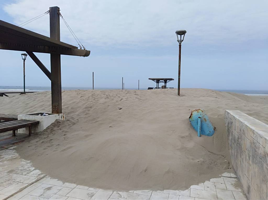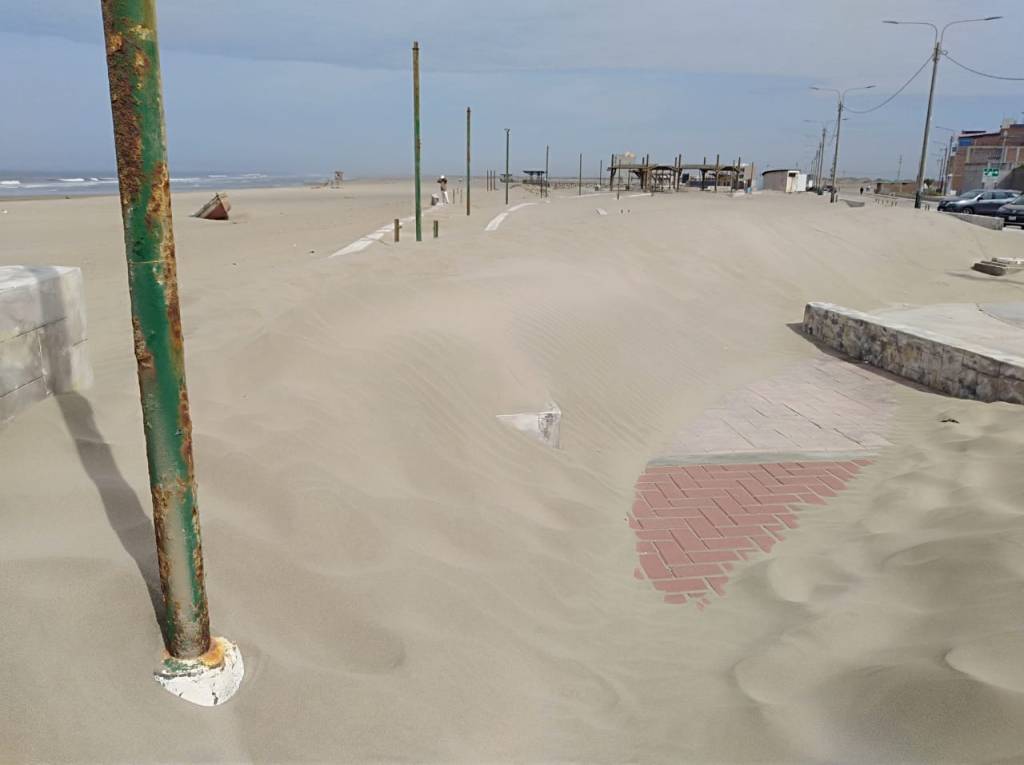 “Hacemos lo que podemos, solo limpiamos los accesos de la parte central del malecón. Estamos a la espera de que envíen maquinaria; caso contrario todo quedará tapado por la arena”, comentaron las servidoras municipales.