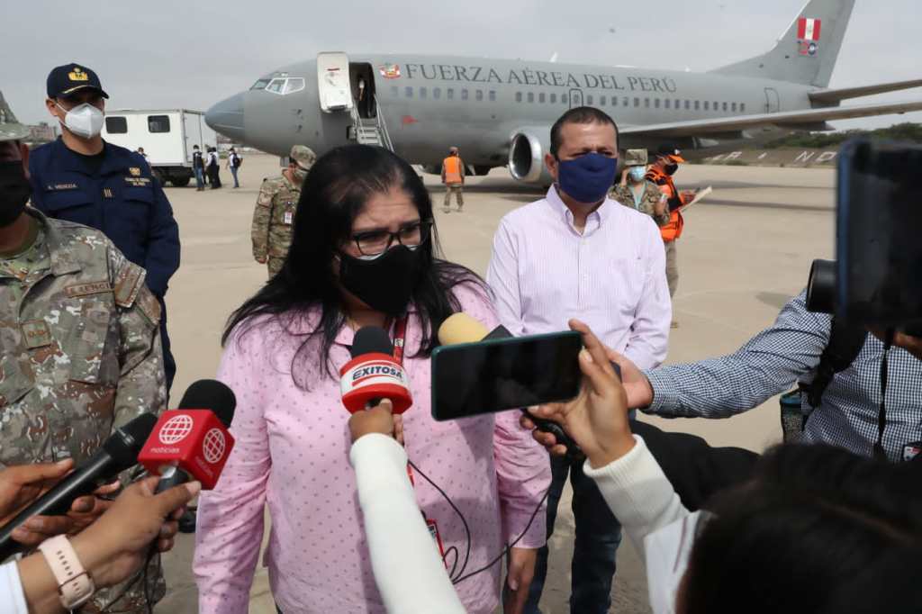 La ministra de Defensa, Nuria Esparch, afirmó que Lambayeque es la primera región que recibió el paquete completo de vacunación para inmunizar a todo el personal de Salud que trabaja en la primera línea de defensa contra el Covid 19. Esparch arribó a Lambayeque para cumplir una recargada agenda que comprende el monitoreo de los avances de la lucha contra la pandemia del Covid 19, el proceso de vacunación y el problema de contaminación del agua en Pacora.