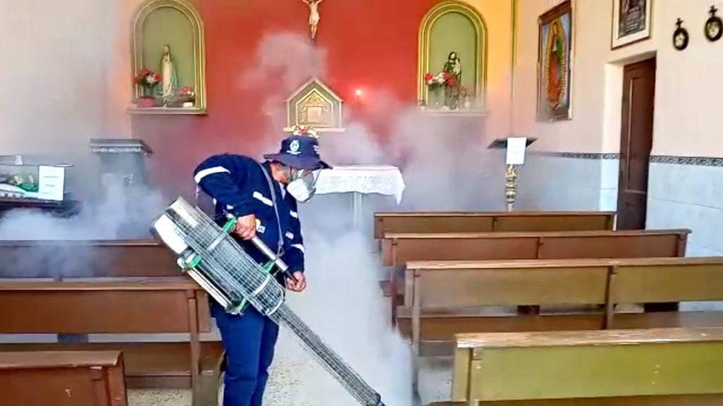 Según informaron especialistas de la Dirección Ejecutiva de Salud Ambiental, se están utilizando motomochilas para el rociado del insecticida en áreas verdes y termonebulizadoras para los ambientes cerrados como oficinas y consultorios.