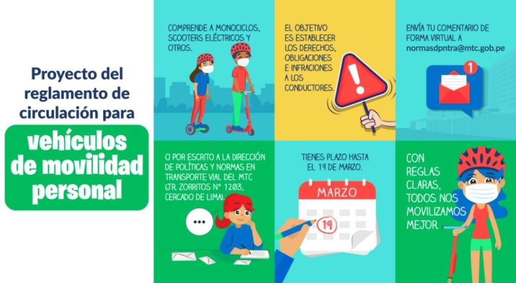 El Ministerio de Transportes y Comunicaciones (MTC) publicó el proyecto del reglamento de circulación para vehículos de movilidad personal como los scooters, monociclos eléctricos y otros, con el fin de establecer normas, obligaciones, infracciones y sanciones a las personas que conducen estas pequeñas unidades de transporte.