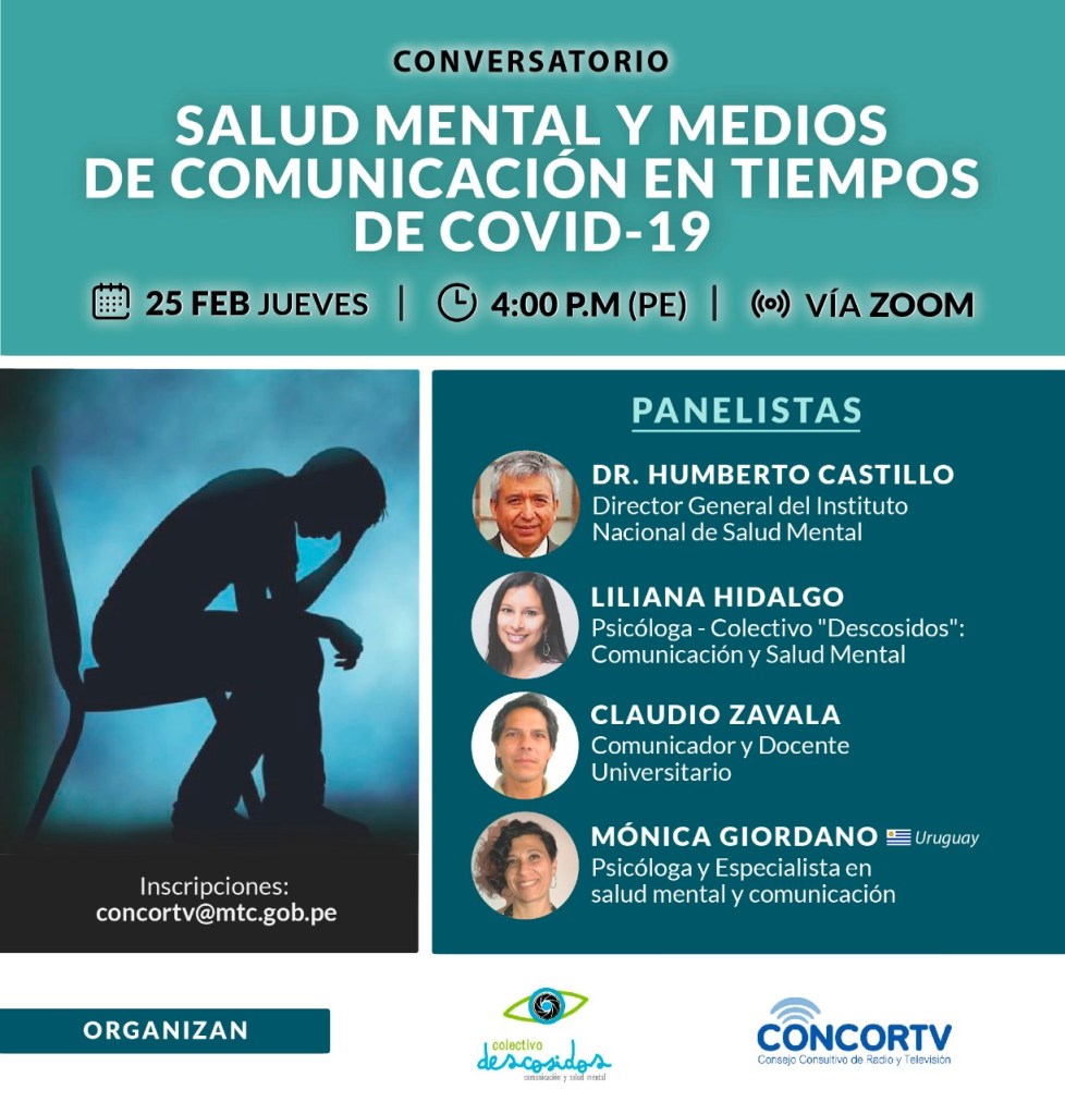 El CONCORTV y el Colectivo “Descosidos”: Comunicación y Salud Mental, invitan a participar del conversatorio: “Salud mental y medios de comunicación en tiempos de COVID-19”.