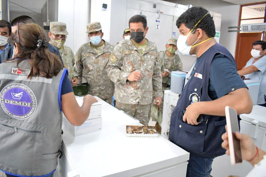 Para cumplir con la jornada de vacunación del personal de la Séptima Brigada de Infantería, la Gerencia Regional de Salud Lambayeque dispuso seis brigadas de vacunación conformadas por personal de enfermería y técnicos en enfermería, termos porta vacunas y el almacenamiento de los biológicos.