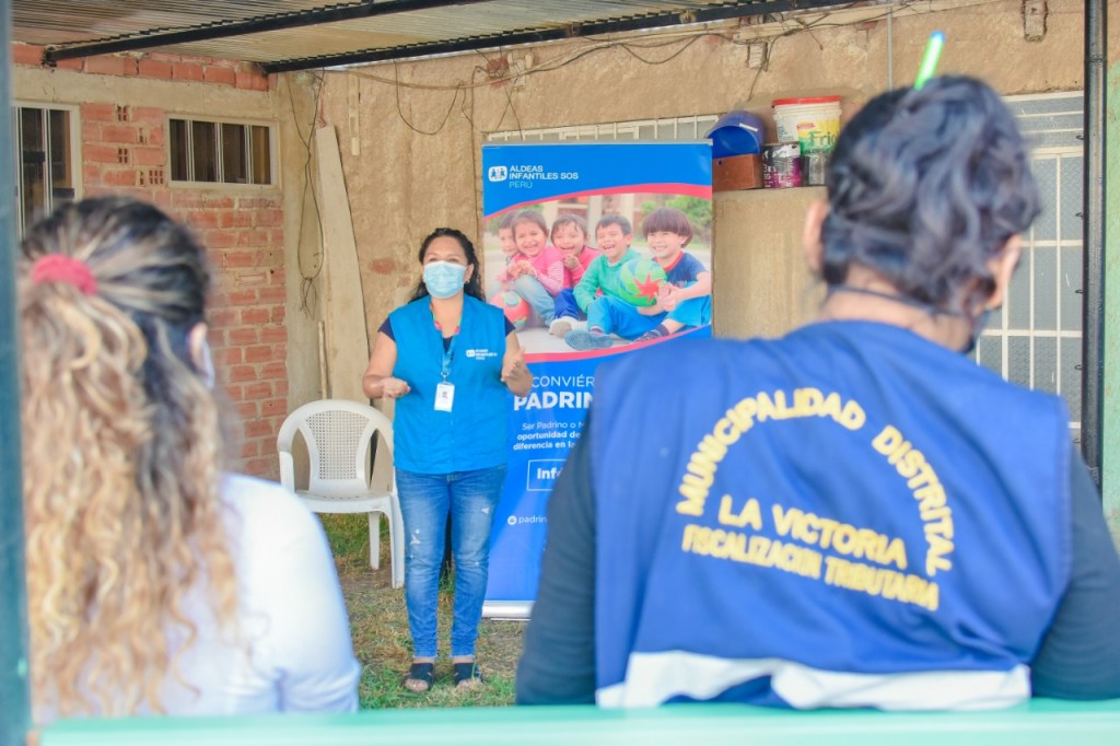 La captadora de Amigos SOS, Hellen Alejandría Díaz hoy ha realizado una charla a todos los trabajadores de la comuna distrital de La Victoria, a fin de expresarles su compromiso con esta acción social que ha emprendido Aldeas Infantiles SOS