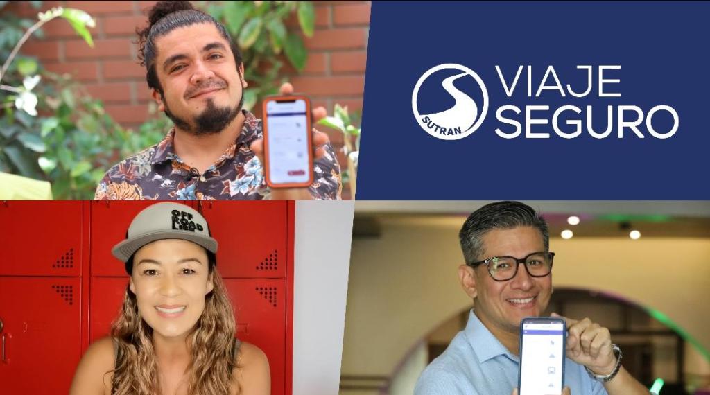 Reconocidos personajes se sumaron a la iniciativa digital “Viaje Seguro”, el aplicativo móvil creado por la Superintendencia de Transporte Terrestre de Personas, Carga y Mercancías (SUTRAN) que permite a los usuarios del servicio de transporte terrestre, alertar la ocurrencia de asaltos o accidentes durante sus viajes interprovinciales.