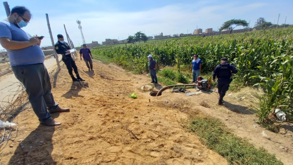 Los campesinos, al taponear los buzones, retenían las aguas residuales con el fin de subir sus niveles, para luego colocar una motobomba con sus respectivas mangueras, procediendo luego al bombeo para el riego del cultivo de maíz, uso que lo venían realizando desde hace 15 días.
