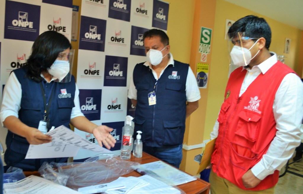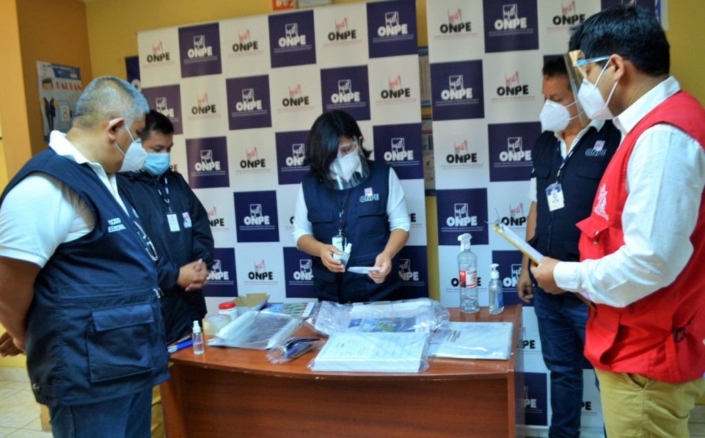 Asimismo, mencionó que el material electoral contiene protectores faciales, mascarillas para los miembros de mesa y tres paquetes divididos en útiles, instalación y escrutinio. En el paquete de útiles se encuentra una cinta adhesiva de color plomo, tres lapiceros y un tampón para impresión de huella dactilar; el paquete de instalación está compuesto por las cédulas de sufragio, el acta padrón, la cartilla de hologramas, el sobre anaranjado para guardar la lista de electores, la cartilla de instrucción para miembros de mesa y personeros, y una bandeja para colocar el DNI.