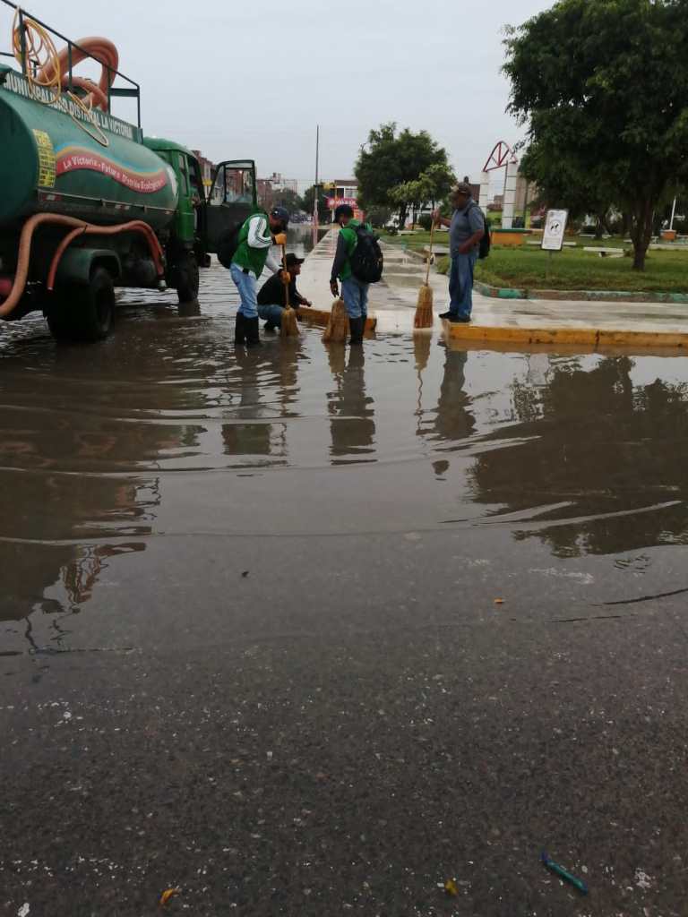 La Municipalidad distrital de La Victoria a través de la Jefatura de Limpieza inició la evacuación de las aguas acumuladas en diversos sectores del distrito, producto de las lluvias caídas en horas de la madrugada.