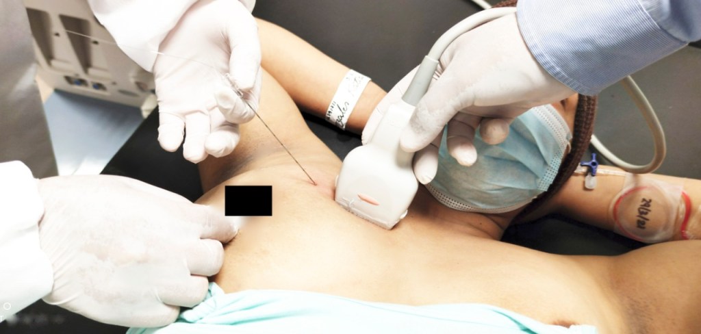 El proceso estuvo dividido en etapas. La primera fue la colocación de un clip en el tumor previo a la quimioterapia, mismo que ayudó como marcador para facilitar la localización de la lesión y así lograr una seguridad oncológica para realizar una cirugía adecuada. Posterior a ello, ayudados de orientación ecográfica, se colocó una guía metálica para proceder a la cirugía de resección de toda la lesión, logrando la conservación total de la mama y aminorar el riesgo de recurrencia. Finalmente, se colocaron nuevos clips metálicos que permiten un marcaje especial de la zona donde va a recibir radioterapia complementaria.