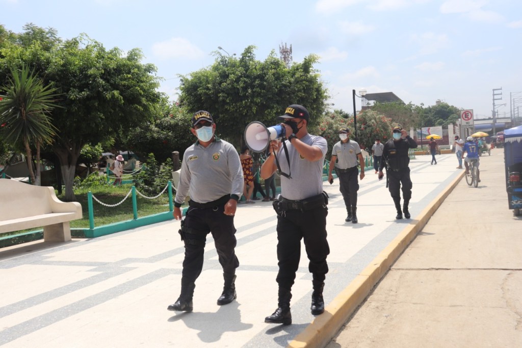 Con mensajes alusivos al cumplimiento de los protocolos de Bioseguridad y las normas sanitarias que rigen estos tiempos de pandemia, efectivos de la Comisaría Sectorial de Olmos con megáfono en mano recorren las calles de la ciudad incentivando a la población.
