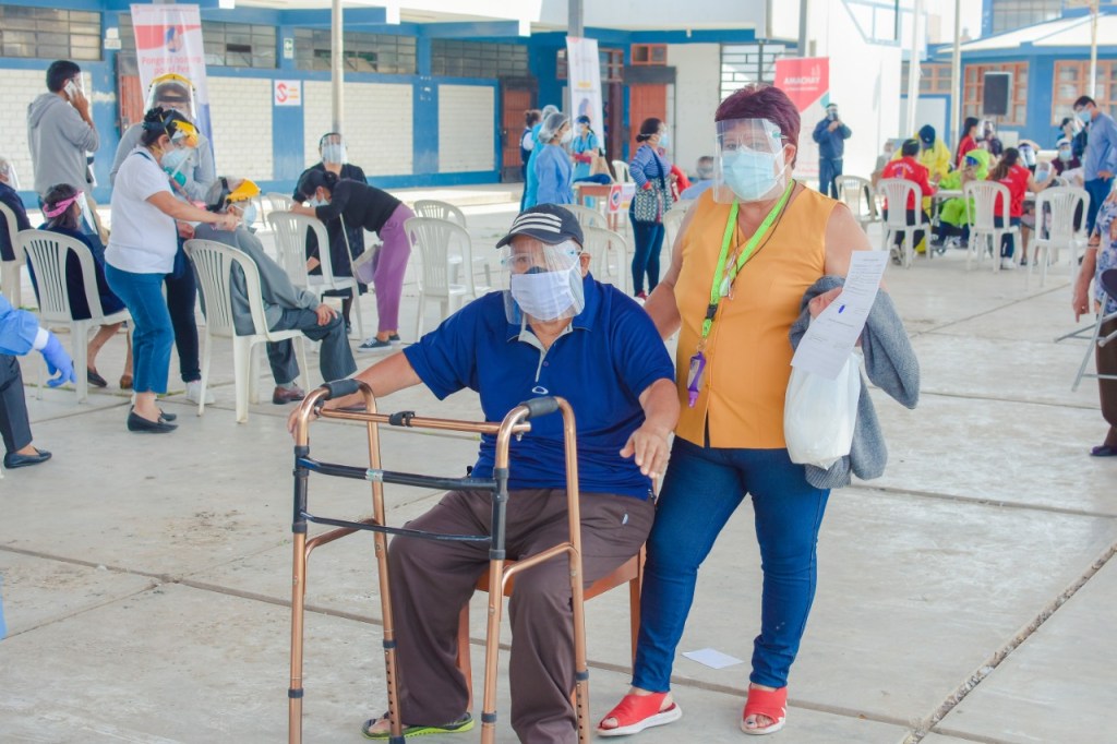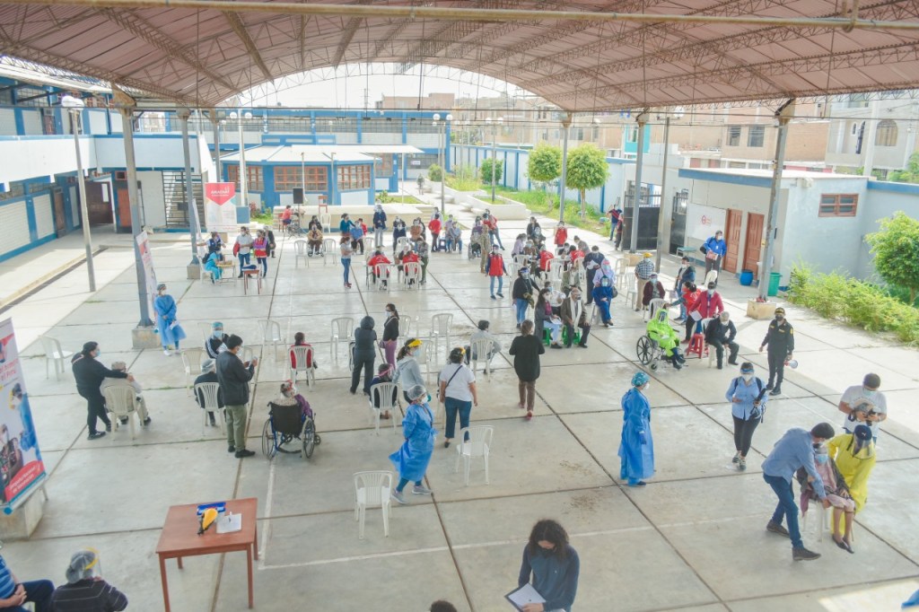En las instalaciones de la I.E Carlos Augusto Salaverry desde las 8 de la mañana se inició la vacunación a los adultos mayores, en una jornada de tres días que culminará este jueves 29 de abril.