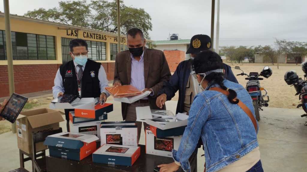 La distribución de Tablet del programa Aprendo en Casa, en los I.E 11559 (El Triunfo Tumán), I.E 11265 (El Progreso, Tumán), I.E Maria Céspedes Sinol (La Cantera, Pátapo), I.E 11502 y I.E Inca Garcilaso de la Vega (Paccherrez, Pucalá), lugares a los que se hicieron presentes para la entrega el gerente de Educación Daniel Suárez, director de la Ugel Chiclayo Ángel Salazar Piscoya y otros funcionarios.