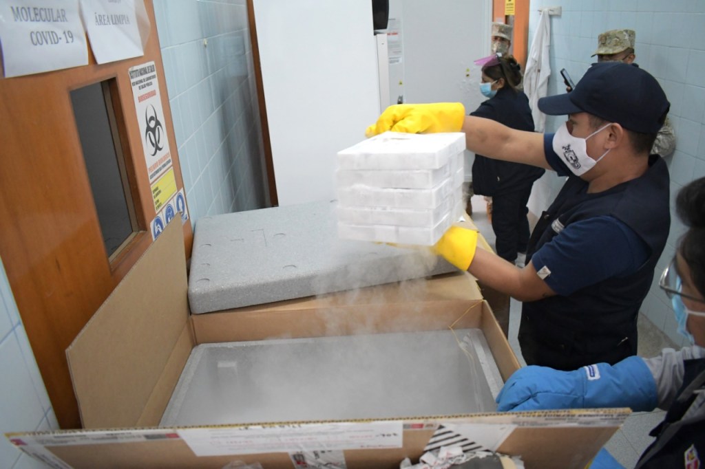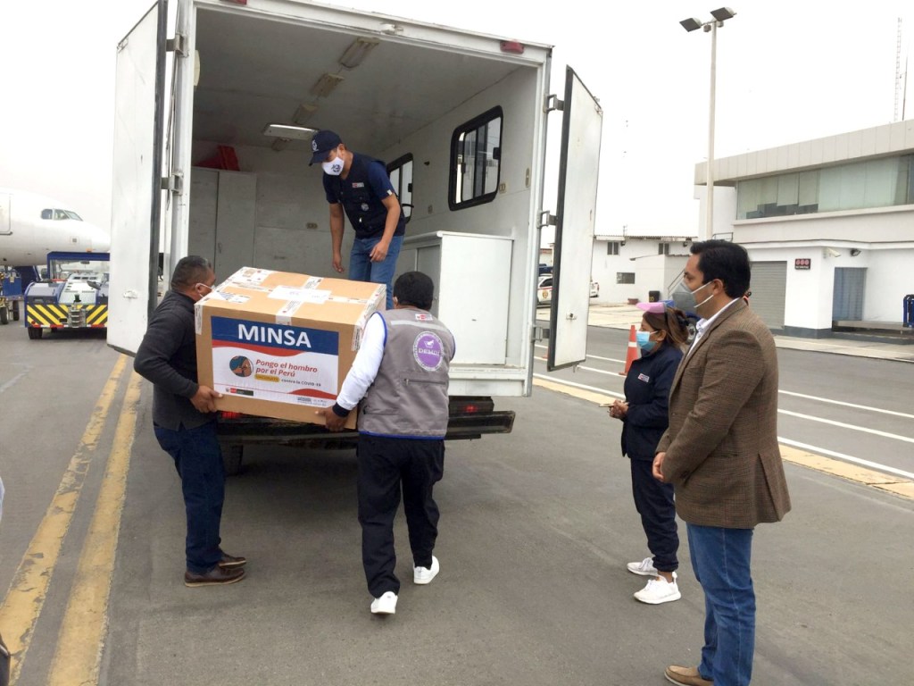 El gerente regional de Salud de Lambayeque, Dr. Alipio Rivas Guevara acompañado por el representante del Ministerio de Salud, Dr. Aldo Maruy, llegaron hasta el aeropuerto de Chiclayo para verificar la llegada del biológico.
