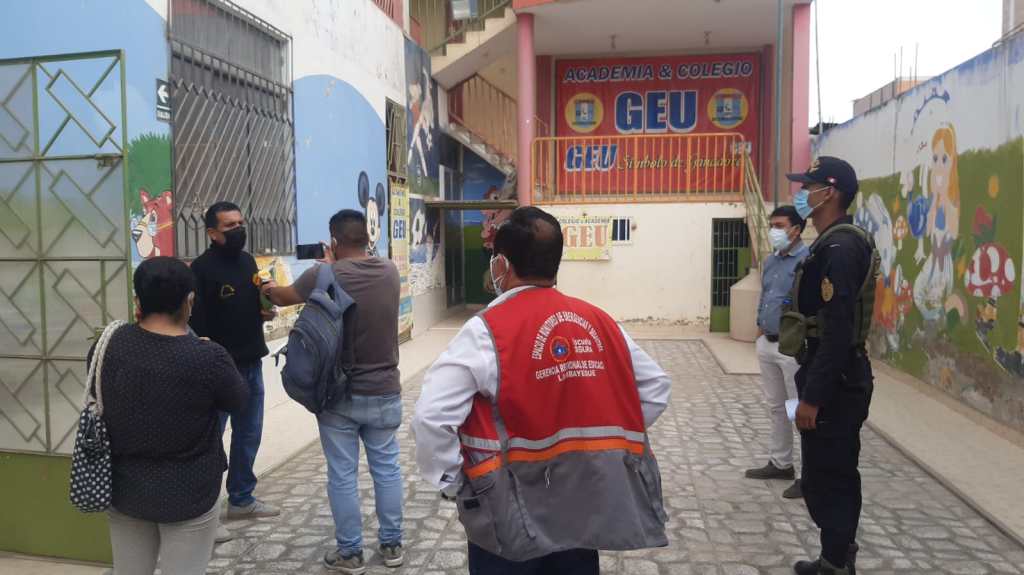 La Municipalidad distrital de La Victoria en coordinación con la Gerencia Regional de Educación clausuró y multó a la Institución Educativa GEU, al encontrársele infraganti dictando clases presenciales.