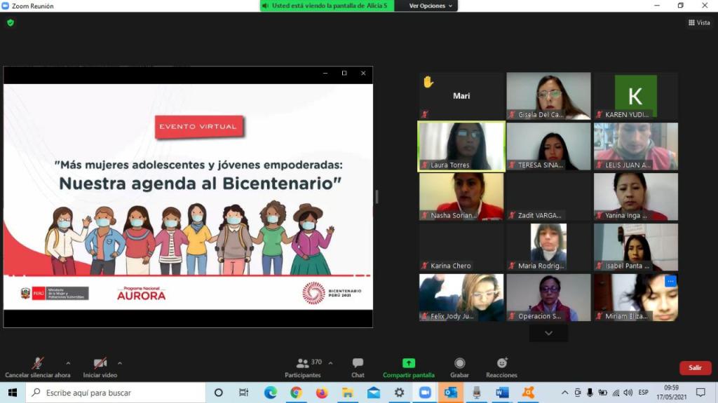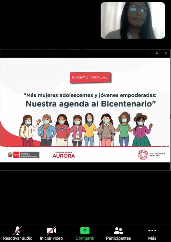 Debido al estado de emergencia nacional, esta iniciativa será llevada a cabo utilizando las redes virtuales, para luego ir progresivamente aperturándose actividades presenciales con las medidas de seguridad respectivas y el amparo de la ley. El día 17 de mayo se realizó el primer evento virtual titulado: “Más mujeres adolescentes y jóvenes empoderadas: Nuestra agenda al Bicentenario”. El mismo que tuvo por objetivo presentar a la comunidad virtual de adolescentes y jóvenes mujeres del Club mediante dos conversatorios como también socializar los avances y compromisos para este año de la intervención.