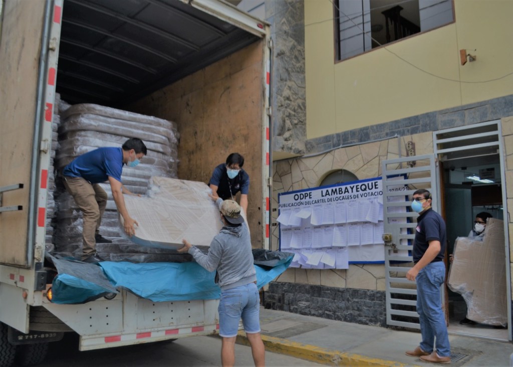 La Oficina Descentralizada de Procesos Electorales (ODPE) Lambayeque ha recibido hoy el material electoral que será empleado el domingo 6 de junio para la Segunda Elección Presidencial 2021.