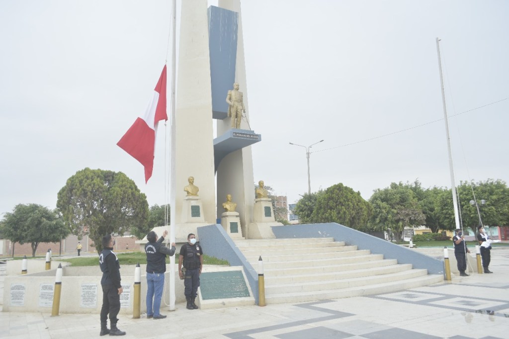La ceremonia se ha realizado en la Plaza Miguel Grau Seminario, la misma que ha permitido rendir homenaje a la bandera del Perú, con asistencia restringida de las autoridades, participando sólo el personal de Serenazgo y Seguridad Ciudadana.