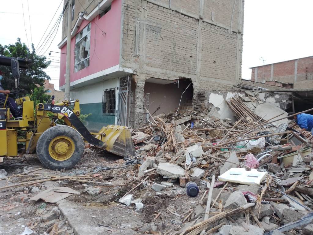 La Municipalidad distrital a través de la Gerencia de Servicios Públicos inició la erradicación de los residuos sólidos, ocasionados por la explosión.