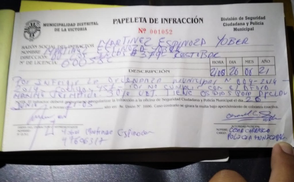 “ Durante la intervención se acreditó al señor Martínez Espinoza Yover como representante del local, a quien se le aplicó una multa del 30% de una UIT y la clausura por 15 días, al haber infringido la Ordenanza Municipal 009-2019, al incumplir con el aforo y las disposiciones del gobierno central por la emergencia sanitaria por el Covid 19”, señaló el funcionario municipal.