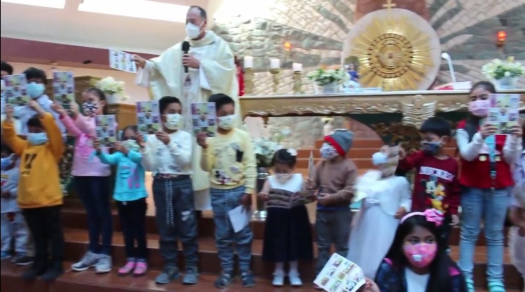 Padre “Lute” contó la historia de la aparición del Niño Jesús en la hostia consagrada en Ciudad Eten, enfatizando que en estos días se viene celebrando la Feria Internacional en honor a Santa María Magdalena y al Divino Niño iniciada el 12 de julio y va hasta el 26 de julio. Recientemente durante la Misa de Promesa se presentó la historieta de la aparición divina.