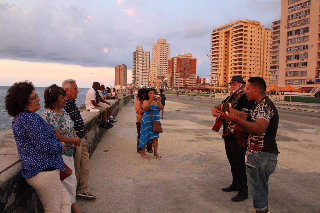 En el Malecón habanero, los cantores, en grupos, alegran a los turistas. A cambio de una propina, repiquetean el son cubano. Además, desde esta estructura se disfruta de un atardecer pocas veces visto en otra parte del mundo. La puesta del sol (sunset) se da a eso de las 7:00 de la noche. Tras el abrazador sol y calor del día cubano, uno se sigue refrescando de la brisa.